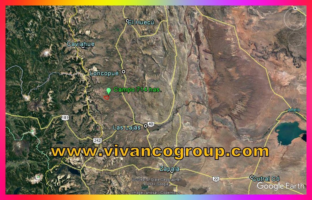 Localización: Se encuentra ubicado a 36 km. al sudoeste de la localidad de Loncopué, zona Paraje Huarenchenque, y a 13 km. al Oeste de la Ruta Provincial Nº 21, en el Departamento Loncopué, Provincia de Neuquén, norte de la Patagonia, República Argentina.
