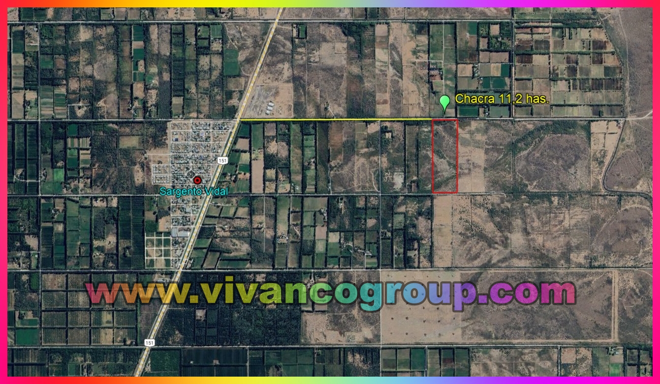 Localización: Se encuentra sobre Calle Rural Nº 11, distante a 1.500 m. al Este de la Ruta Nacional Nº 151, en la localidad de Sargento Vidal, perteneciente a la Municipalidad de Campo Grande, Provincia de Río Negro, Patagonia, República Argentina.
