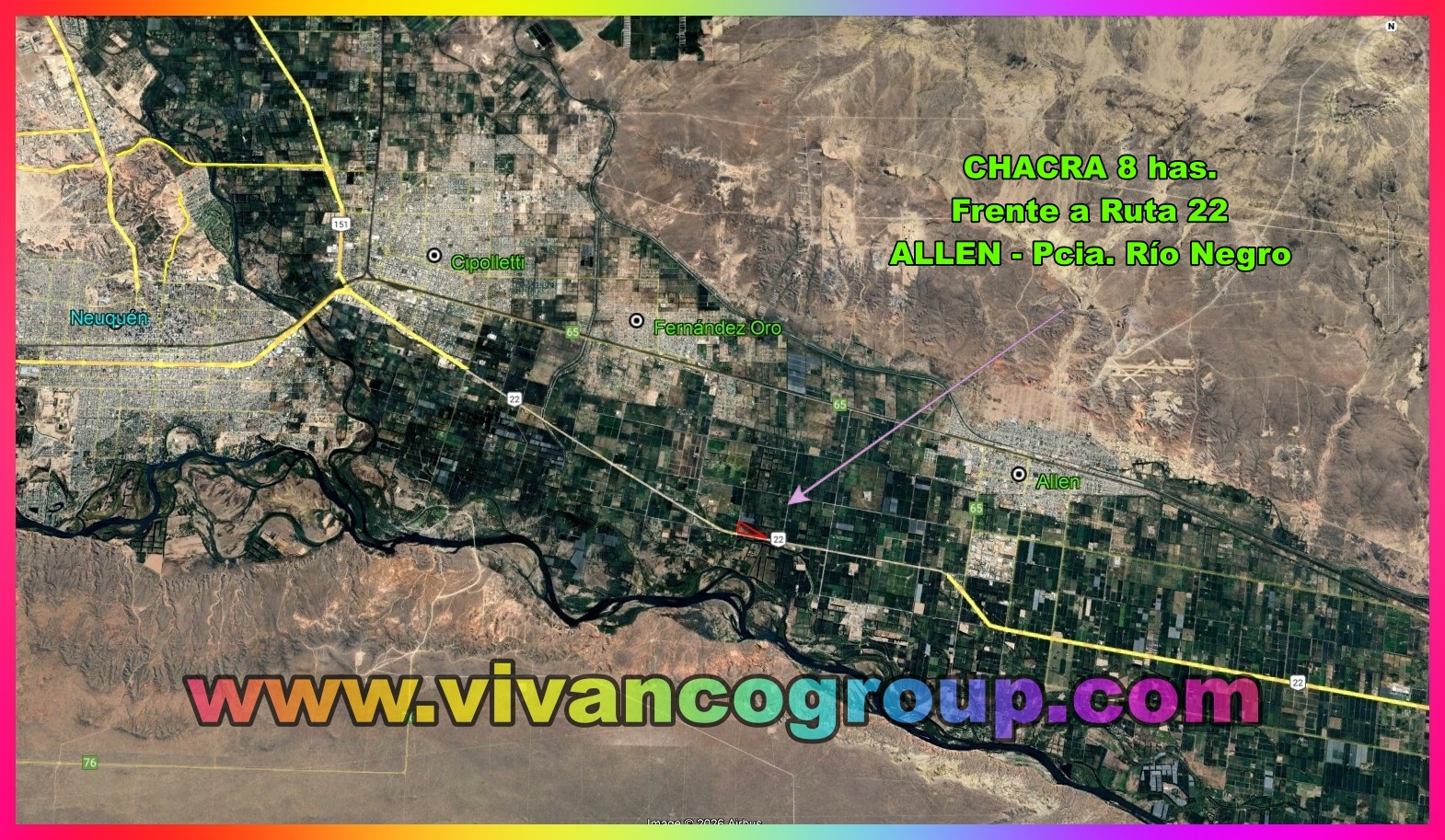 Localización: La propiedad se encuentra localizada en el Km. 1.198 de la Ruta Nacional Nº 22 en la localidad de Allen, en el límite Oeste de la localidad de Gral. Fernández Oro, de la Provincia de Río Negro.
