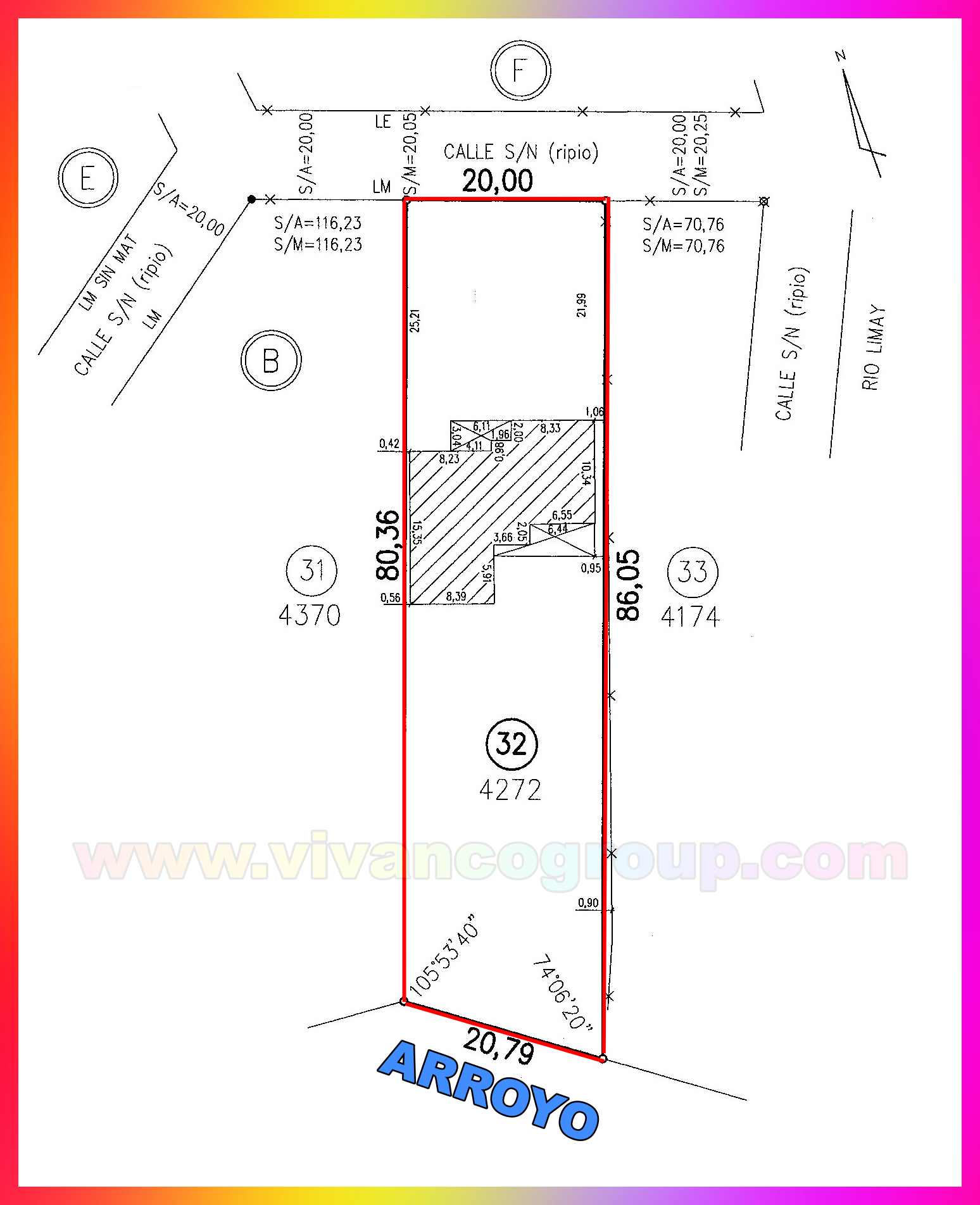 Medidas y Superficie del terreno: El lote mide 20 m. de frente por 83 m. de fondo, encerrando una superficie total según mensura de 1.664,10 m2. El fondo del lote da un arroyo que tiene desembocadura en el curso principal del Río Limay distante a 100 metros de la propiedad.