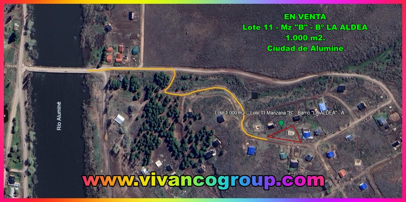 Localización: Se encuentra localizado en el Barrio Residencial "LA ALDEA" sobre la calle recientemente designada como "Camino del Amanecer" de la Localidad de Aluminé, Departamento Aluminé, Provincia de Neuquén, norte de la Patagonia, República Argentina.