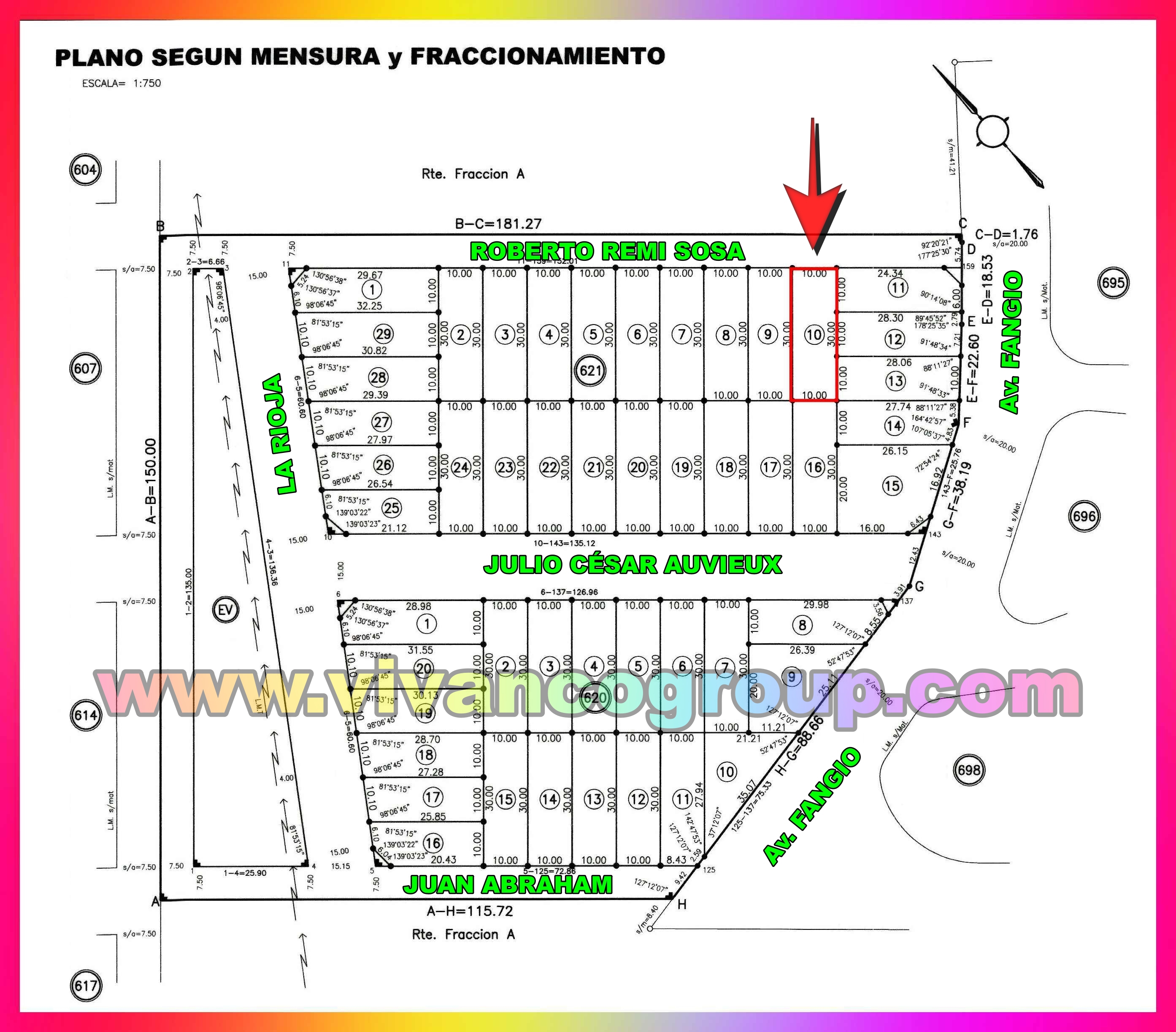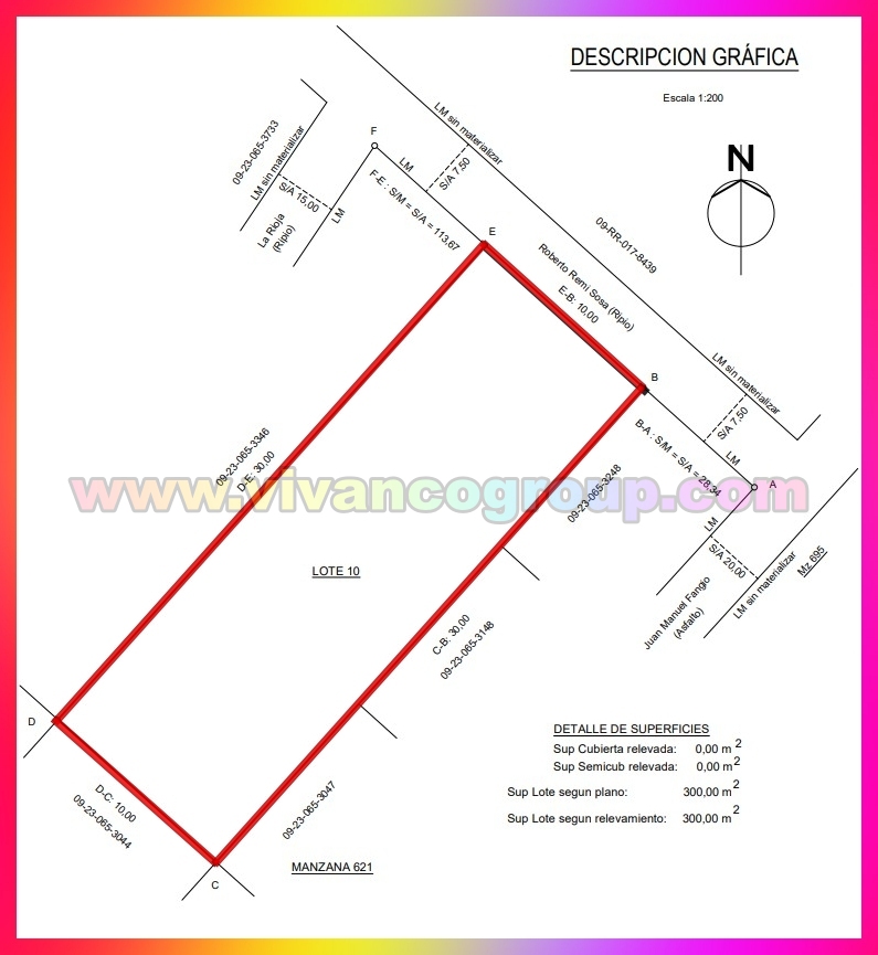Medidas y superficie del terreno: El terreno mide 10 m. de frente hacia el Norte sobre calle Roberto Remi Sosa por 30 m. de fondo, encerrando una superficie según mensura de 300 m2. El terreno tiene orientación hacia el Norte.